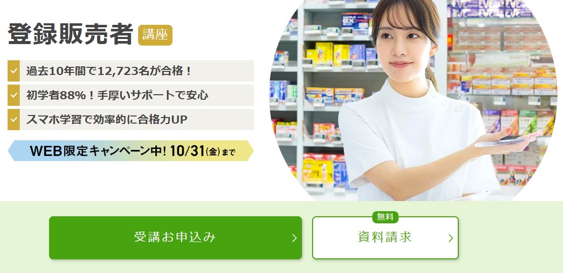 一人で勉強するのが難しいと感じた方には、ユーキャンの登録販売者講座をおすすめします。過去10年間で12,723名もの合格者を輩出している実績のある通信講座です。